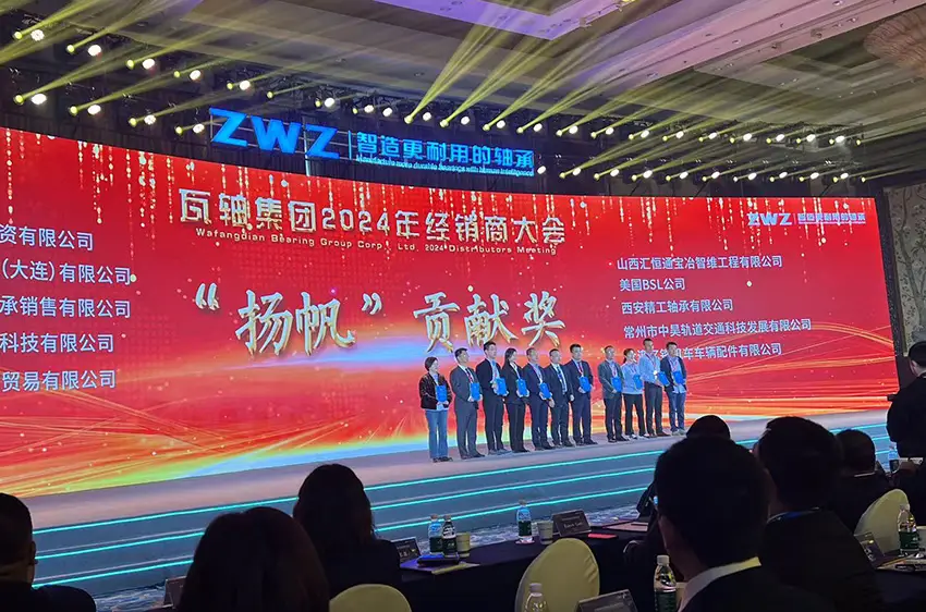 瓦轴集团2024年经销商大会在成都召开,意昂体育轴承有限公司荣获“扬帆贡献”和“最佳业绩”两项荣誉称号。