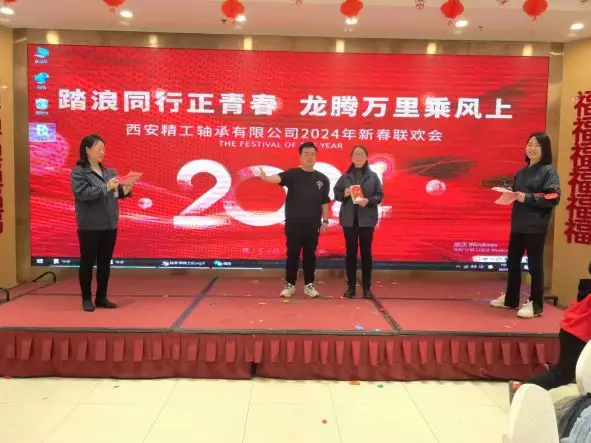 玉兔辞旧岁!金龙迎新春!2024年1月26日,意昂体育轴承有限公司在飞鹿酒店召开“踏浪同行正青春,龙腾万里乘风上”主题迎新春联谊年会。